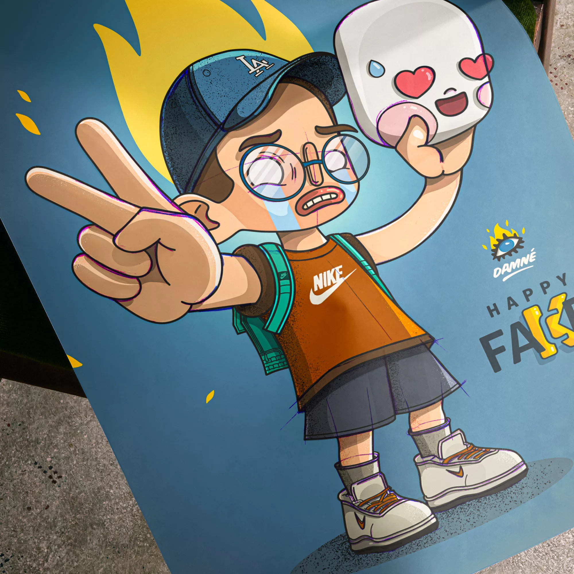 Imprimée en format A2, cette affiche invite à réfléchir aux contradictions que nous camouflons souvent, pour les autres et pour soi-même. Happy Fake est un clin d’œil à celles et ceux qui se reconnaîtront dans ce paradoxe.