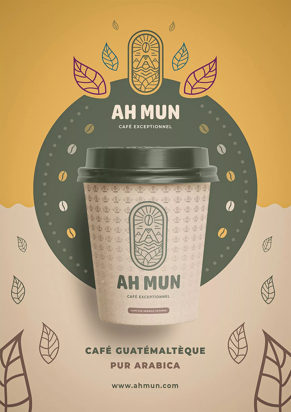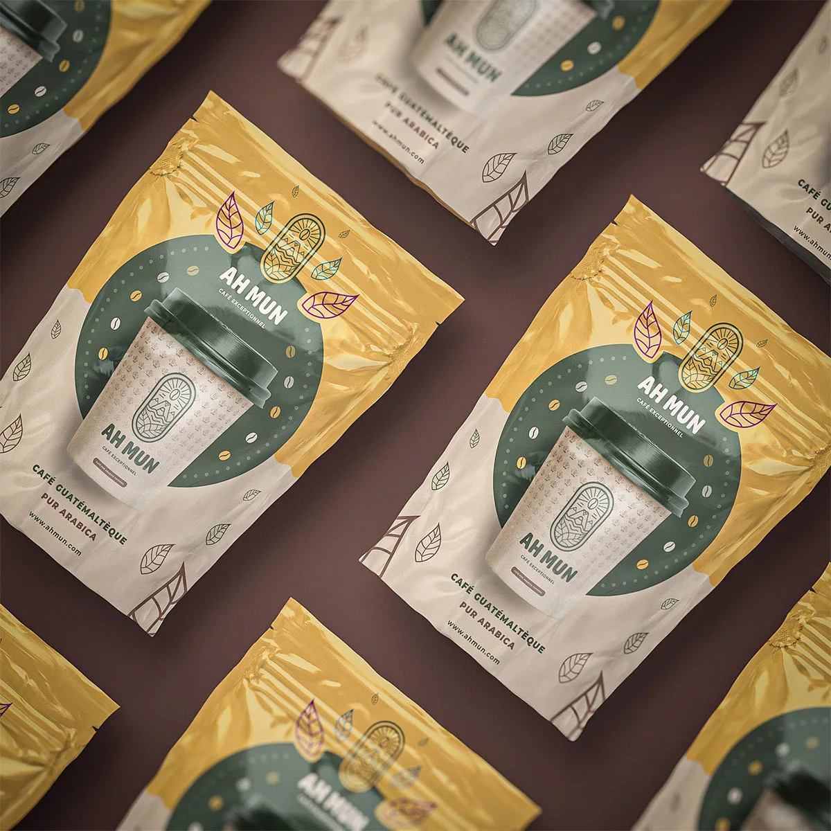 Ah Mun est bien plus qu’un simple café, c’est une immersion dans les terres riches du Guatemala. L’identité visuelle du packaging et du logo incarne l’histoire de ce café exceptionnel, alliant un design minimaliste à des éléments graphiques puisant dans la culture locale.